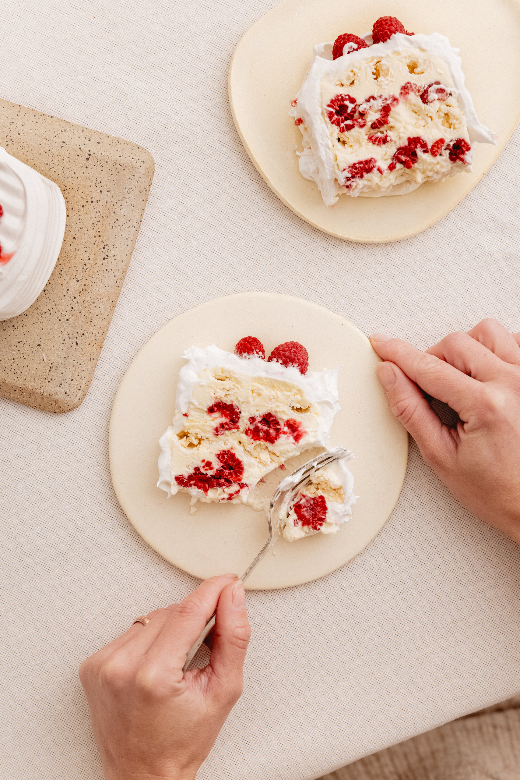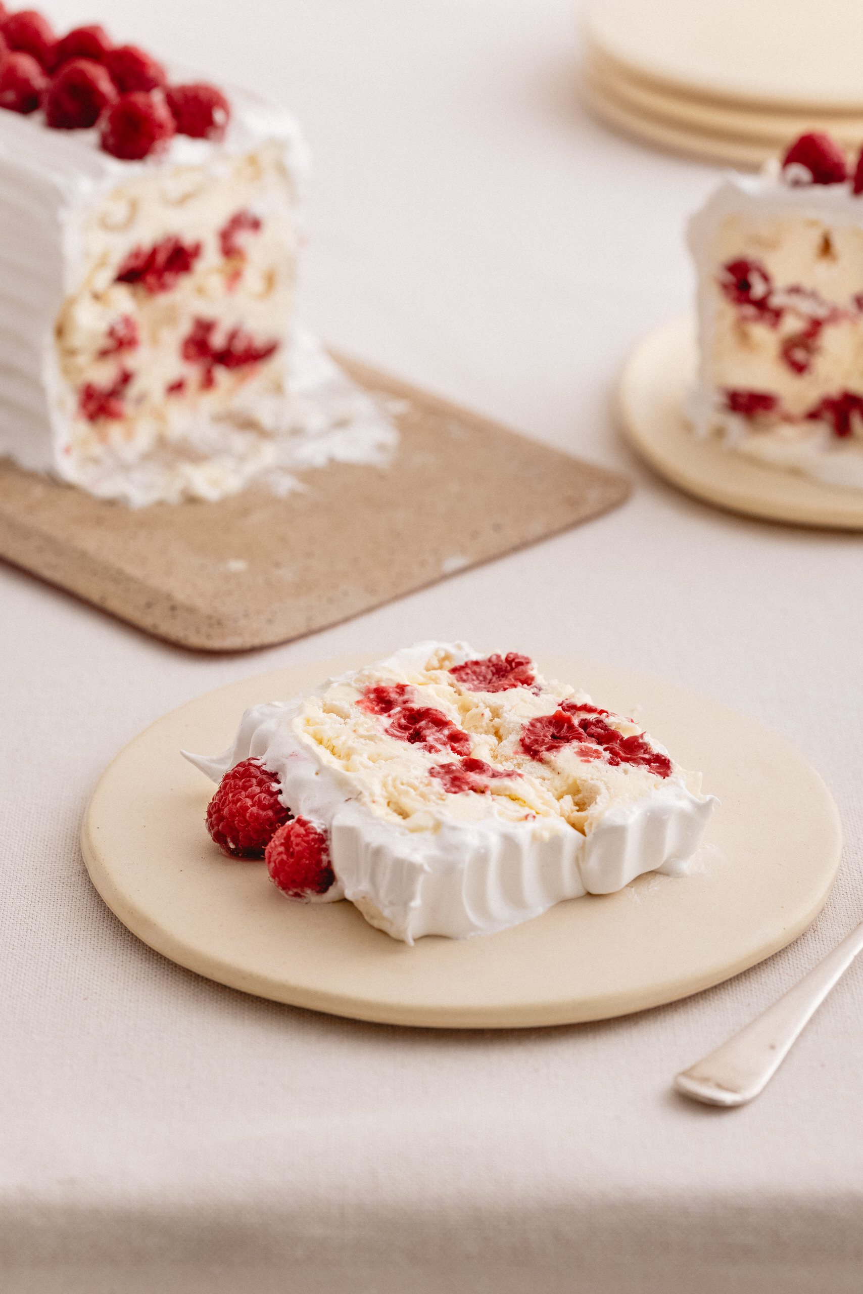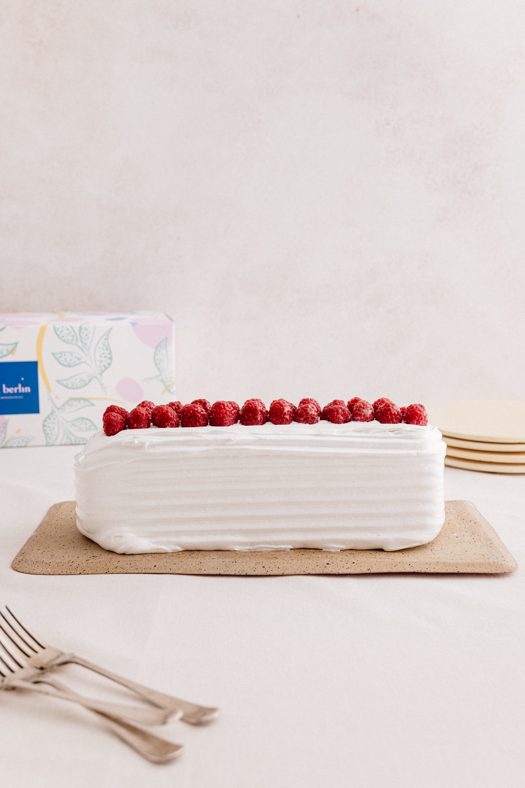 Merengue, Crema sin Lactosa y Frambuesas. Deorada con merengue y Frambuesas.